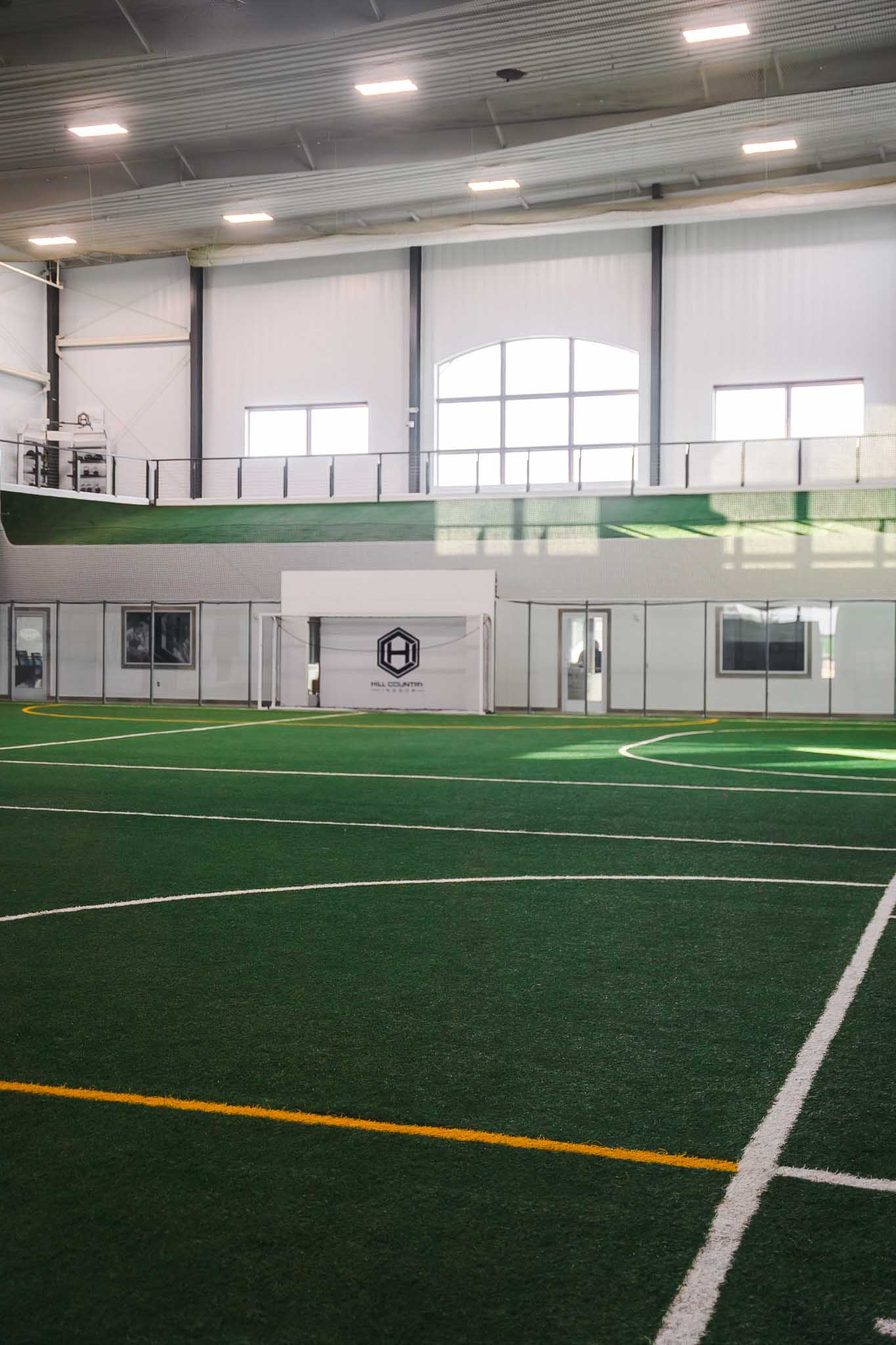 Versatile indoor turf space for athletic training, open play, speed work, and sports-specific drills.